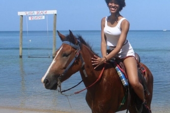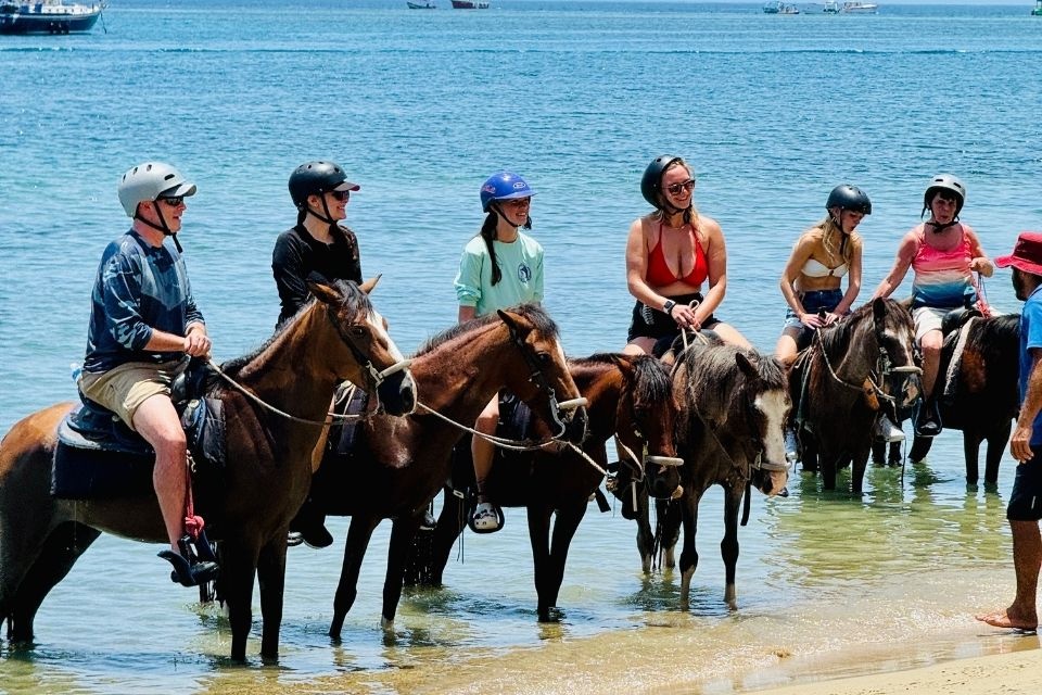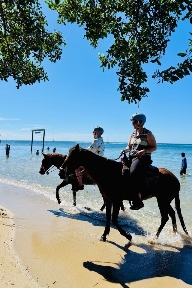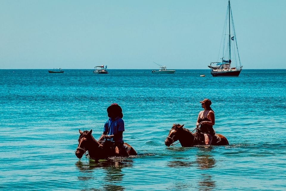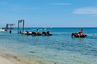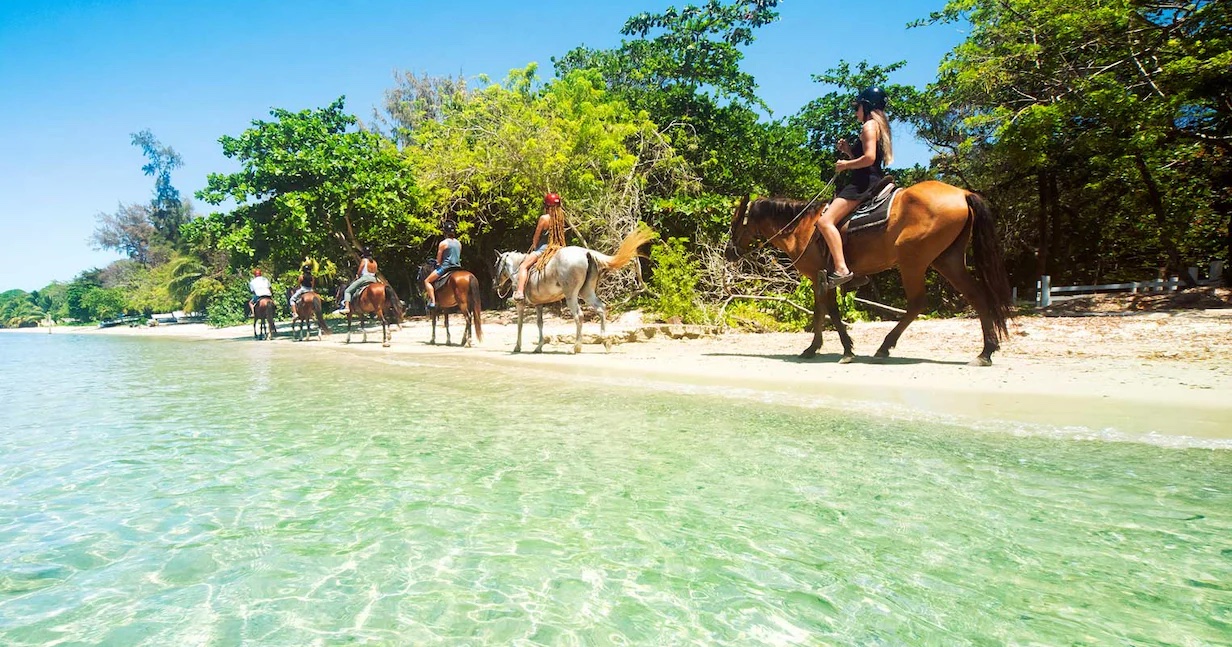 The experience then opens up to one of the most breathtaking highlights of the tour — riding along the beach. Feel the ocean breeze on your skin as your horse walks gently across soft sand, with crystal-clear Caribbean waters stretching endlessly beside you. This is the kind of moment that feels almost unreal — quiet, scenic, and deeply relaxing.