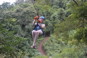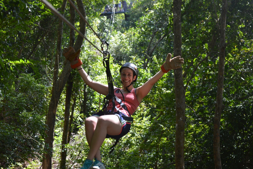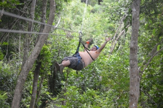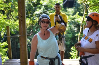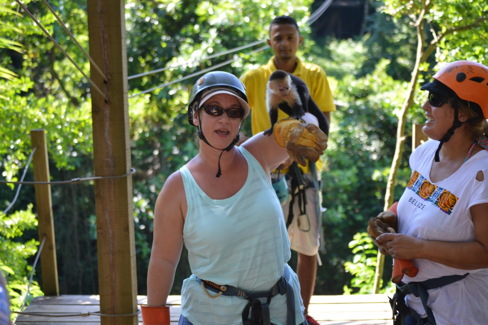 We went zip lining here, which was booked for us by the tour staff outside our hotel. The guides were very friendly, and spoke English well. There were four of us, and we were given a private tour. You have to walk a little way uphill to start the zip lines, but once you reach the top, the lines are situated so that where one ends is close to where the next starts. The last one lands you where the monkey tour starts, so there is minimal walking or climbing, once you reach the first line. There is a photographer who goes with you, and will sell you a CD with all your photos for $35. After completing the zip lines and seeing the monkeys, we walked through the butterfly house. Our total time there was around 2 hours. You can pay with US dollars, or credit card, but I recommend taking cash to tip your guide. By the way, make sure your currency does not have any tears or tape on it. American money is widely accepted in Roatan, however it will not be accepted if it is damaged or taped.Visited April 2016