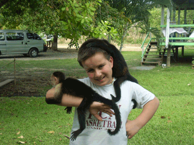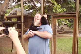 This zipline features the latest in safety equipment including a dual-pulley/dual-cable system (3/8" diameter galvanized aircraft cable) and brand new Petzl safety harnesses, helmets, carabiners and pulleys. Petzl is the leading supplier of zipline safety equipment throughout the world. You will zip from tree platform to tree platform through tall jungle trees, across meadows and from hillside to hillside. The tree platforms are sturdy, measuring at least 10-feet by 9-feet -- offering plenty of room to prepare yourself for the next exciting zip! This zipline will not require riders to self-brake themselves to control their speed as others on Roatan do, and highly-trained guides will accompany each individual group down the course. (Some ziplines merely pass a group of zippers from guide-to-guide located at each station, at the Mayan one guide will go with your group the whole way down the course.) Larger groups will stay together, unlike other Roatan ziplines, so they will be able to experience the thrill together. Additional guides will be assigned to larger groups to maintain the high safety standards. Includes free unlimited access to Victor's Monkey Business, a unique primate interaction. |