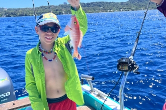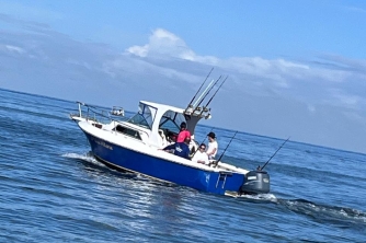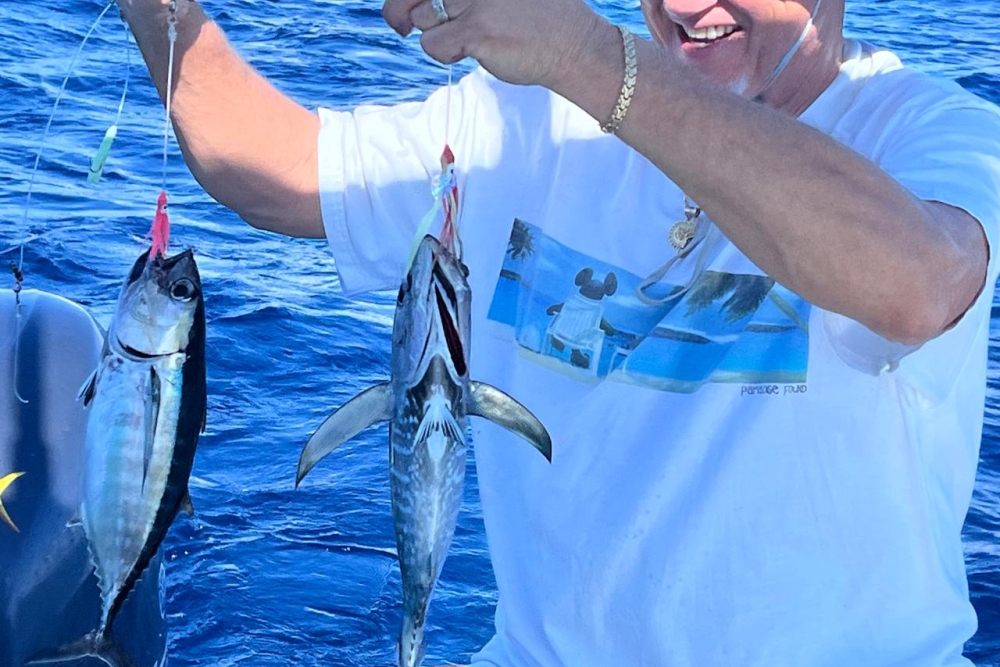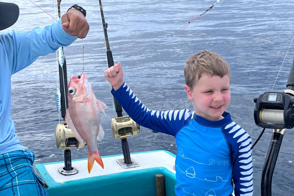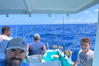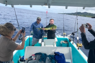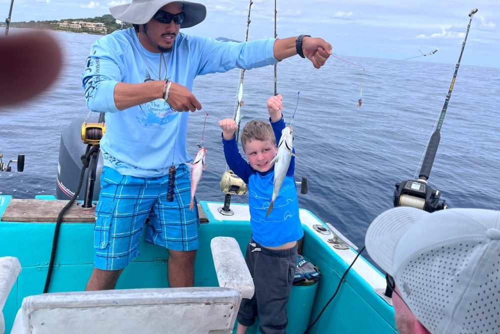 The tour includes the boat, captain, fishing gear, bait, water, sodas, beers, tropical fruit, and snacks.