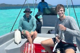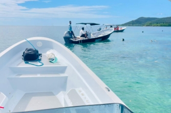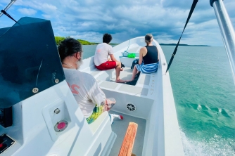 Cooler on board with local beers, water, sodas, rum & snacks